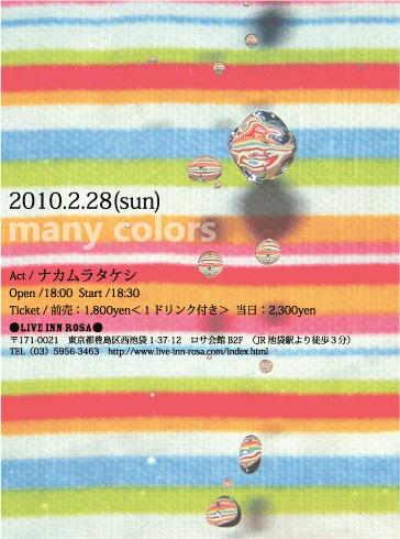 | ■ ■ ■ infomation ■ ■ ■ 5年ぶりの単独ライヴ決定♪ 2010年2月28日(日)池袋ROSA イベント「many colors」出演 OPEN/17:30 START/18:00 出番は18:30からです!! TICKET/前売り\1,800 当日券\2,300 (1ドリンク付) 来場者様全員に5年振りソロライヴ記念CDを差し上げます】 ● LIVE INN ROSA 〒171-0021 東京都豊島区西池袋1-37-12 ロサ会館B2F (JR池袋駅より徒歩3分) TEL(03)5956-3463 http://www.live-inn-rosa.com/index.html ![]() |